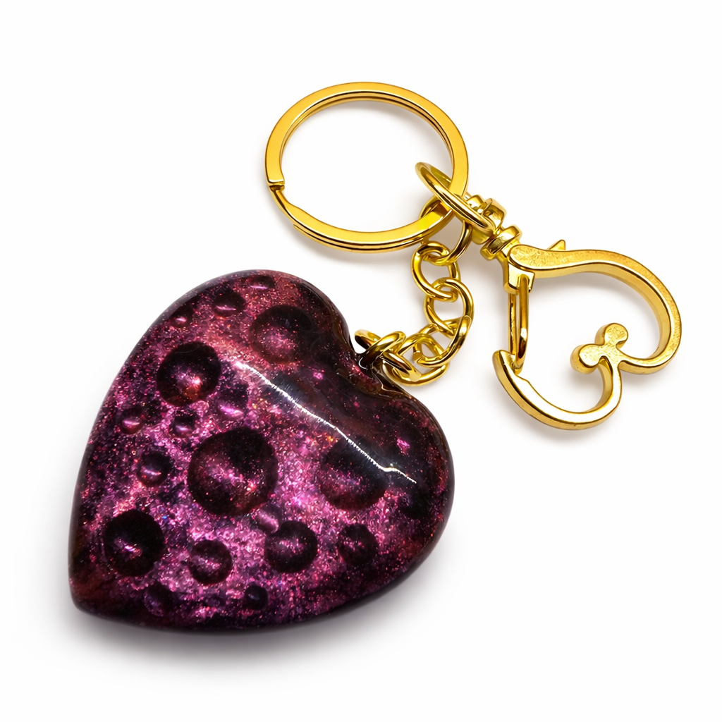 Originální ručně vyráběná klíčenka ve tvaru srdce z epoxidové pryskyřice. Jedna strana je pokryta drobnými kuličkami, které vytvářejí příjemnou strukturu pro hlazení nebo jemné škrábání. Díky tomu může klíčenka fungovat jako malý antistresový pomocník, který pomáhá uvolnit napětí a zaměstnat ruce například při čekání, přemýšlení nebo stresu.