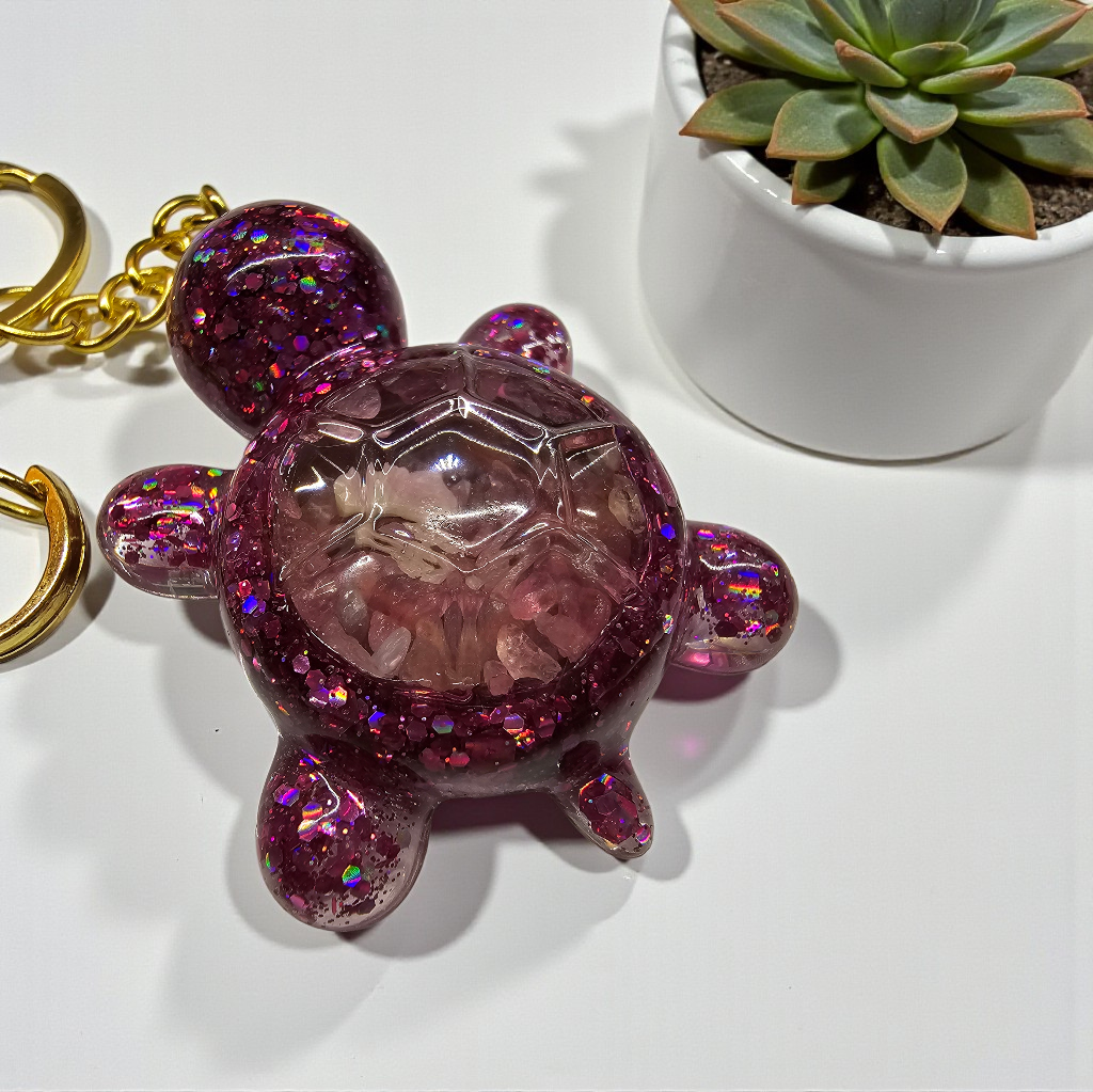 Ručně vyrobená klíčenka ŽELVA. Uvnitř želvičky jsou kamínky Rubelitu.