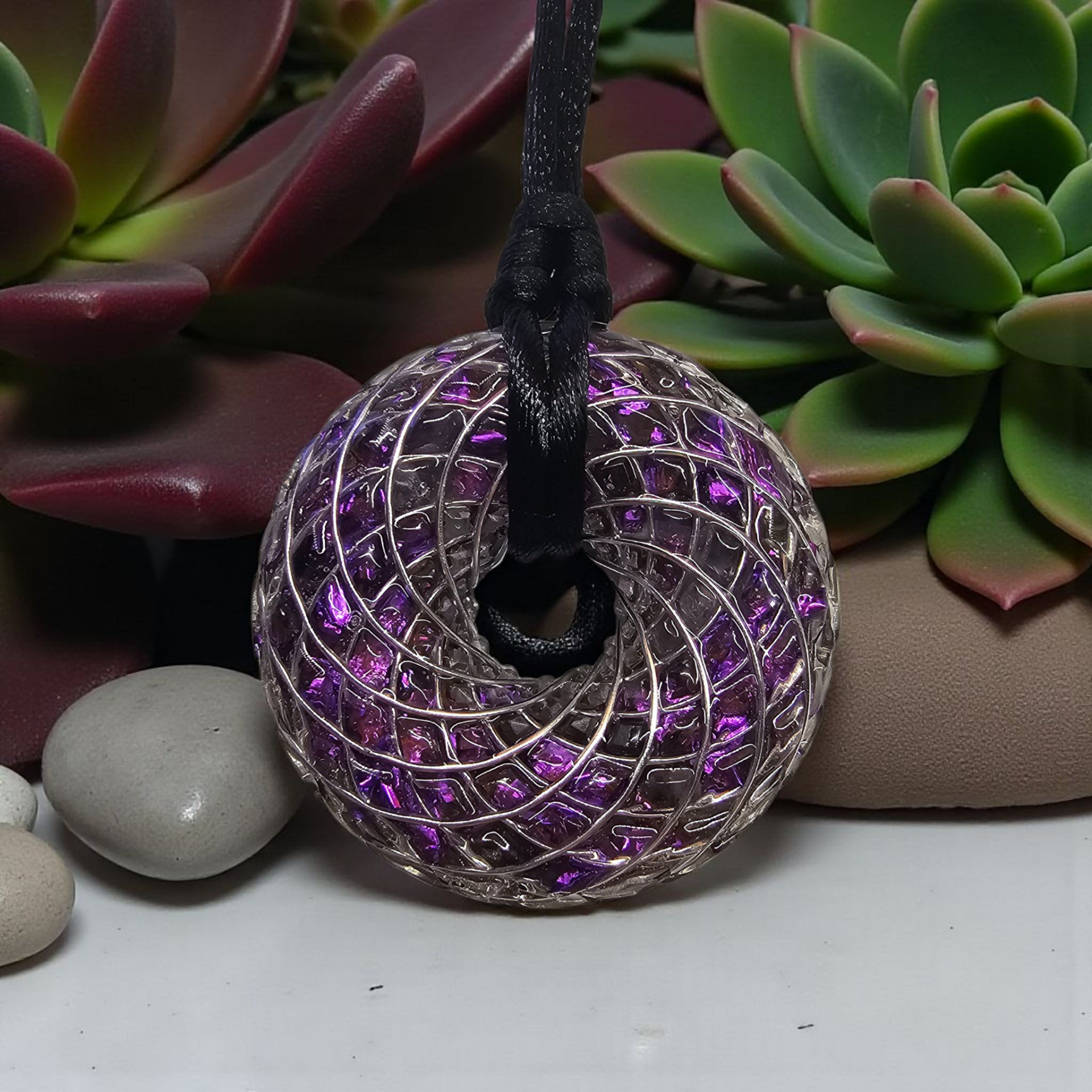 Přívěsek orgonitový Torus - Křišťál, Ametyst 3,5 cm (43)