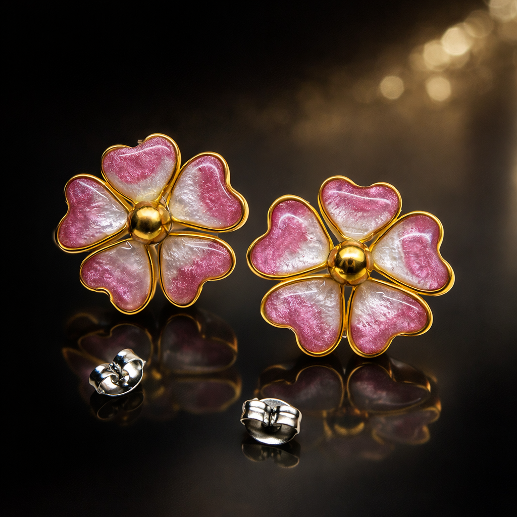 Ručně vyrobené náušnice ve tvaru květiny.