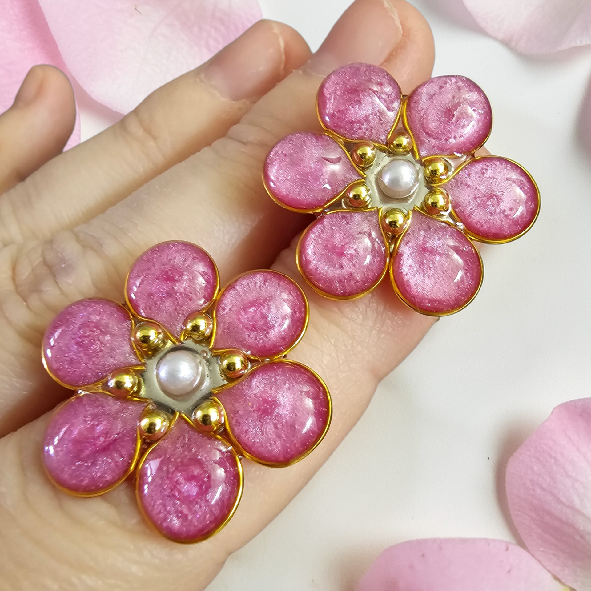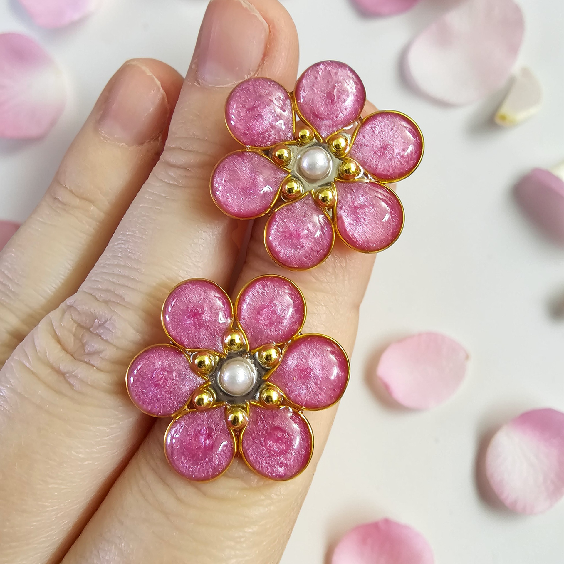 Ručně vyrobené náušnice ve tvaru květiny.Klip zapínání z nerez oceli.