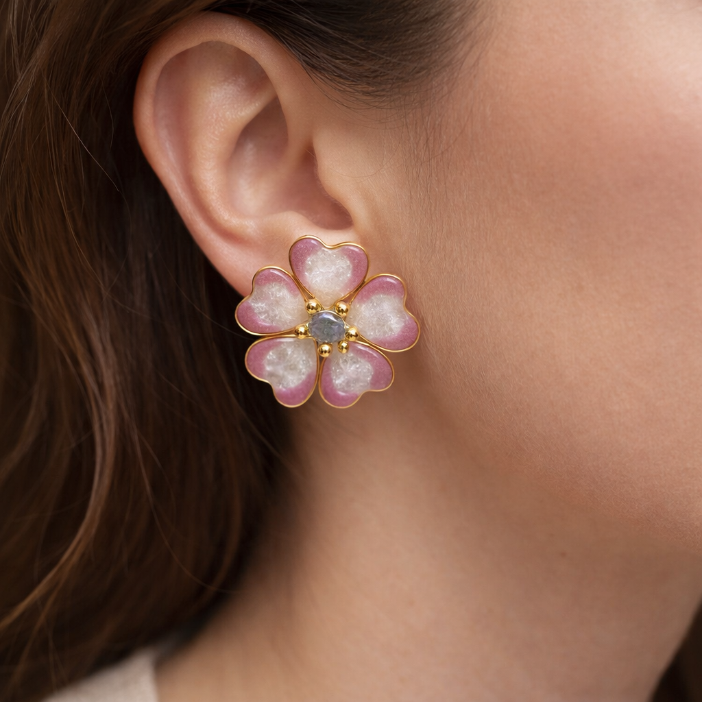 Ručně vyrobené náušnice ve tvaru květiny.