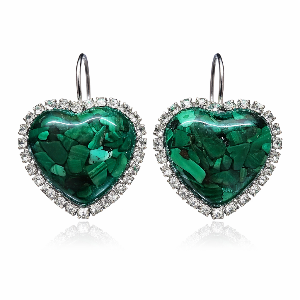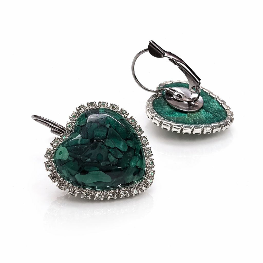Ručně vyrobené náušnice ve tvaru srdce.Zapínání z nerez oceli - háček. Náušnice s Malachitem.