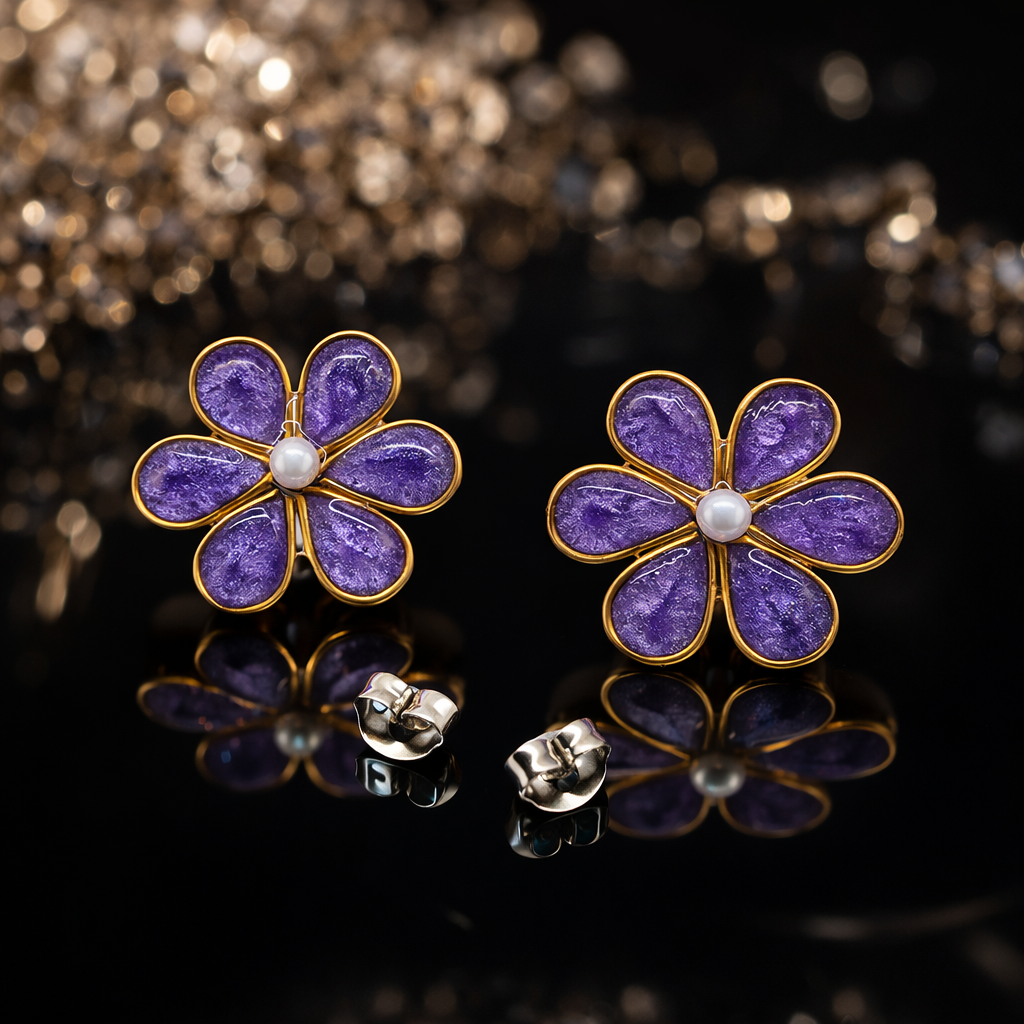 Ručně vyrobené náušnice ve tvaru květiny.Část do ucha je z nerez oceli.