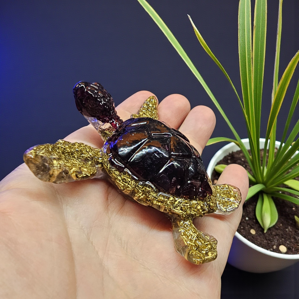 Orgonit do kapsy želva střední - Křišťál, Granát (12)