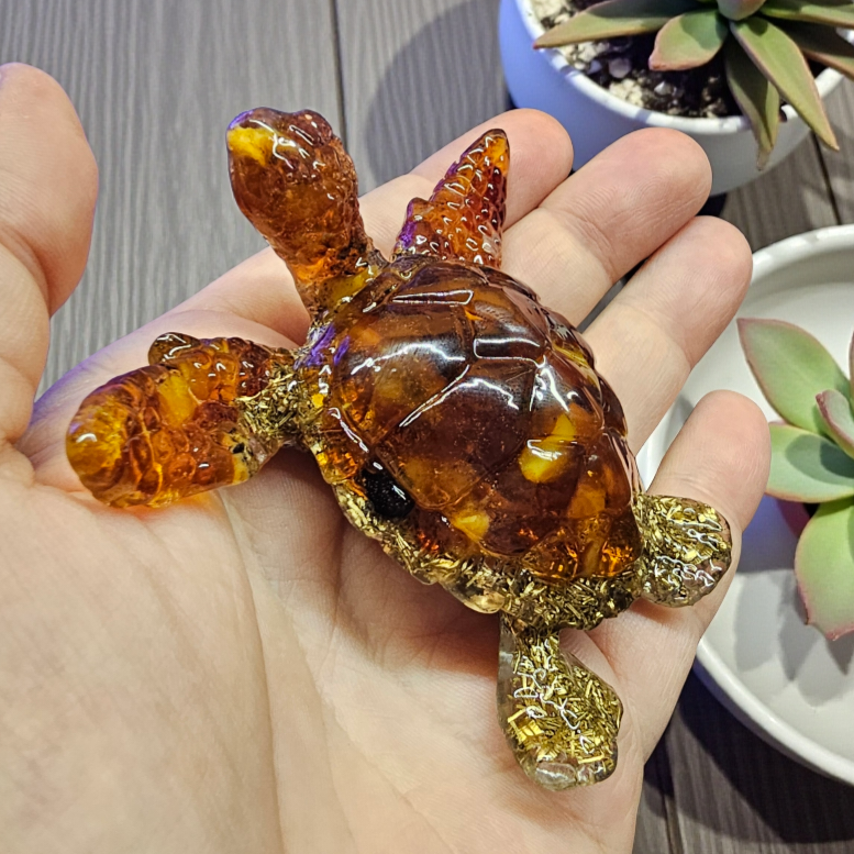 Orgonit do kapsy želva střední - Křišťál, Jantar (10)