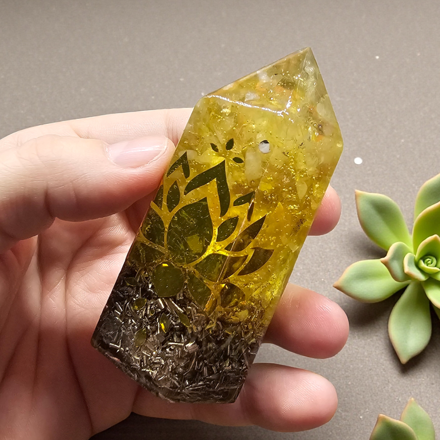 Orgonit KRYSTAL 8x4 cm - Křišťál, Citrín, symbol LOTOS