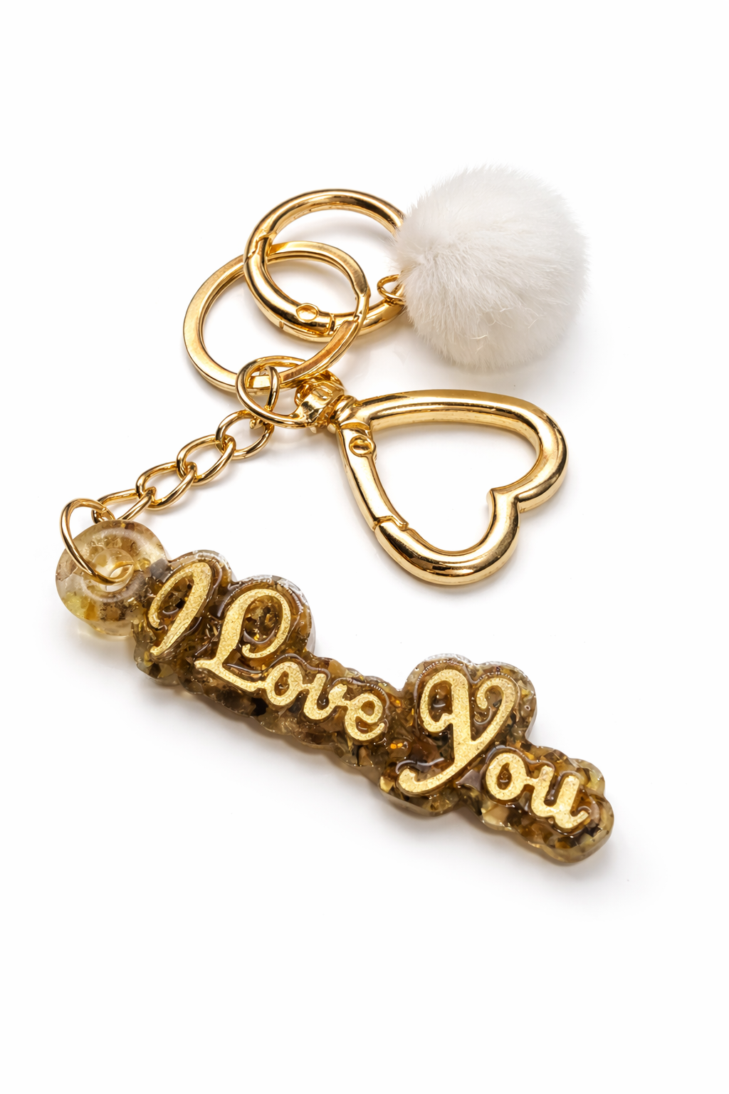 Orgonitová klíčenka I LOVE YOU - Křišťál, Jantar