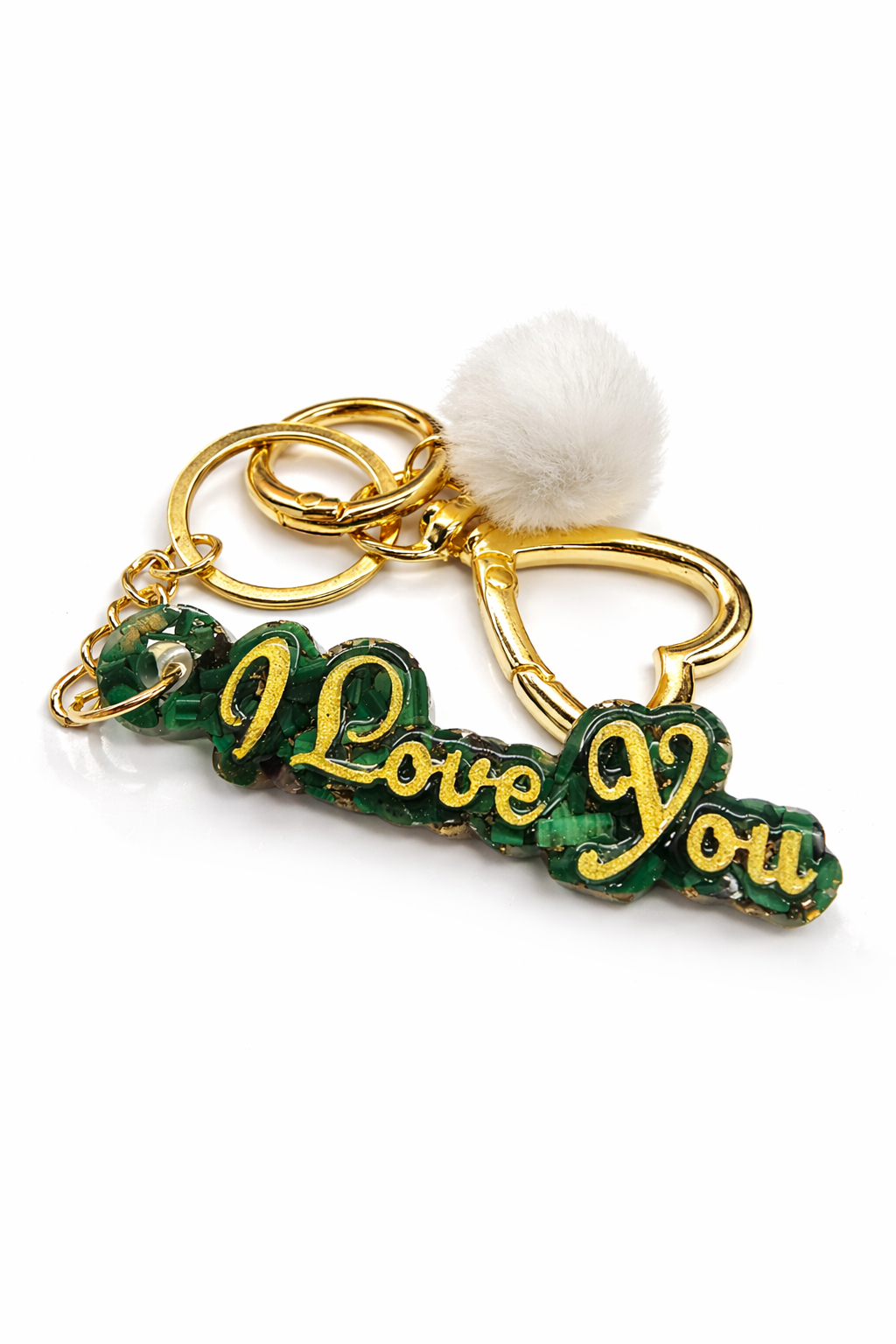 Orgonitová klíčenka I LOVE YOU - Křišťál, Malachit