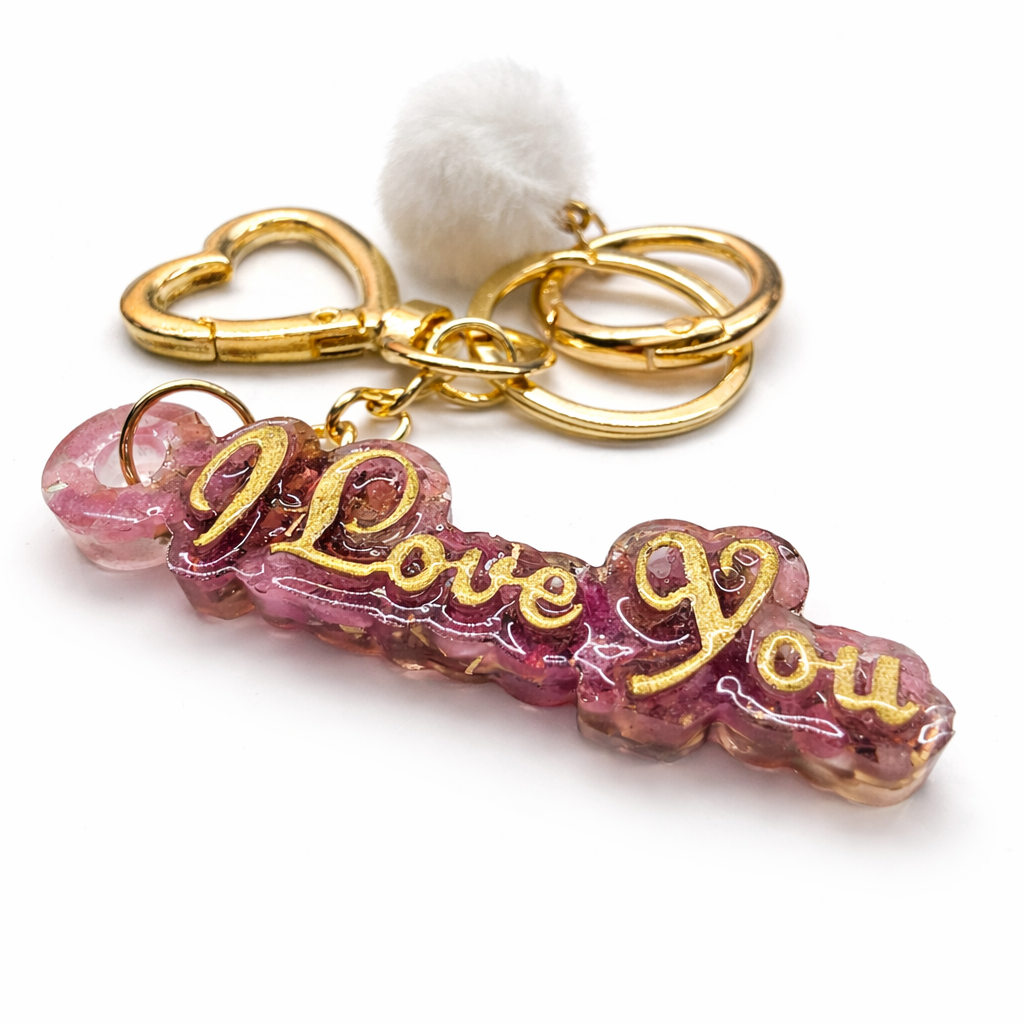 Orgonitová klíčenka I LOVE YOU - Křišťál, Rubelit