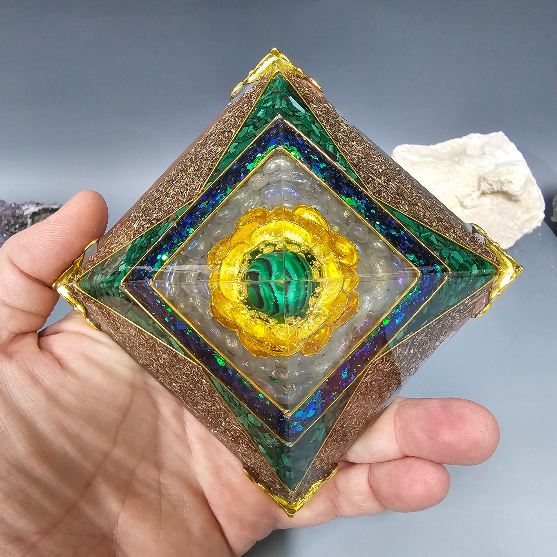 Orgonitová pyramida 6x9 cm - Křišťál, Malachit (4)