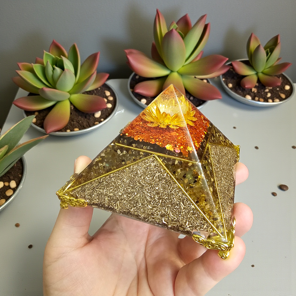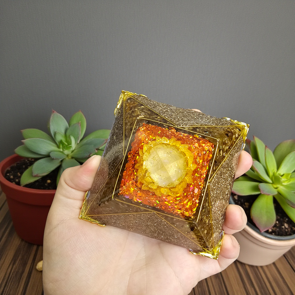 Orgonitová pyramida 6x9 cm - Křišťál, Jantar