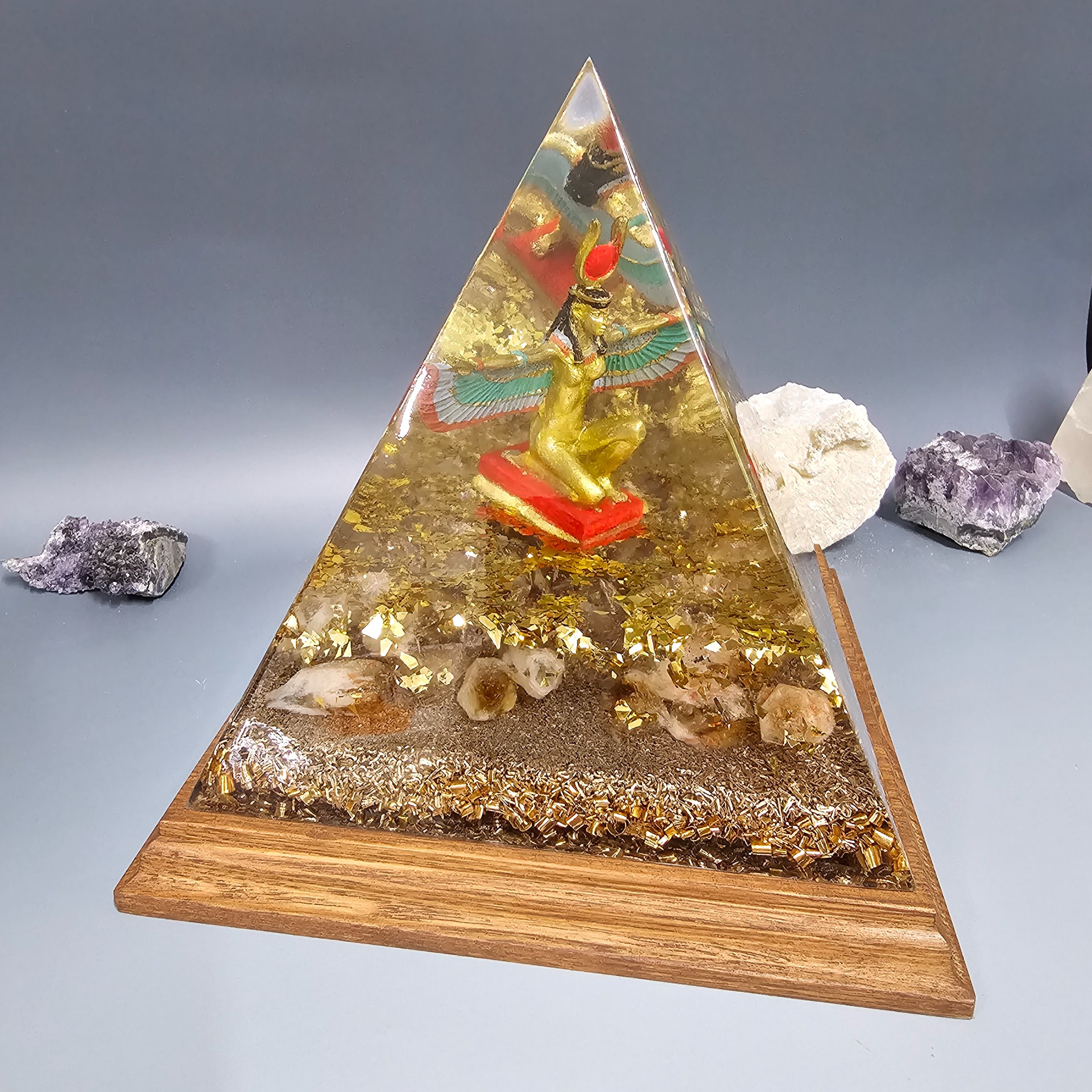 Orgonitová pyramida ISIS 15 cm - Křišťál, Citrín, Slunečný kámen