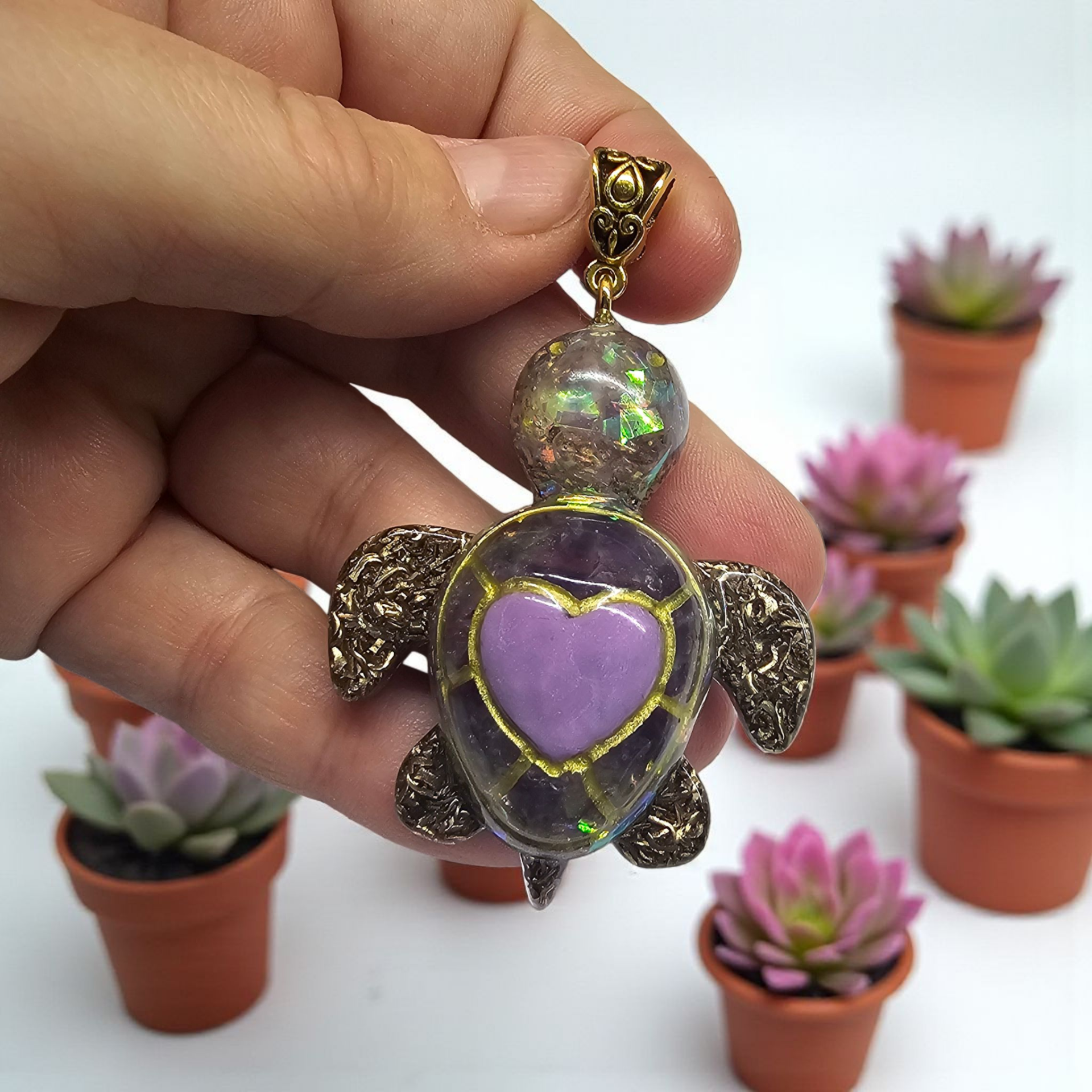 Orgonitový přívěsek želva - Křišťál, Ametyst (12)