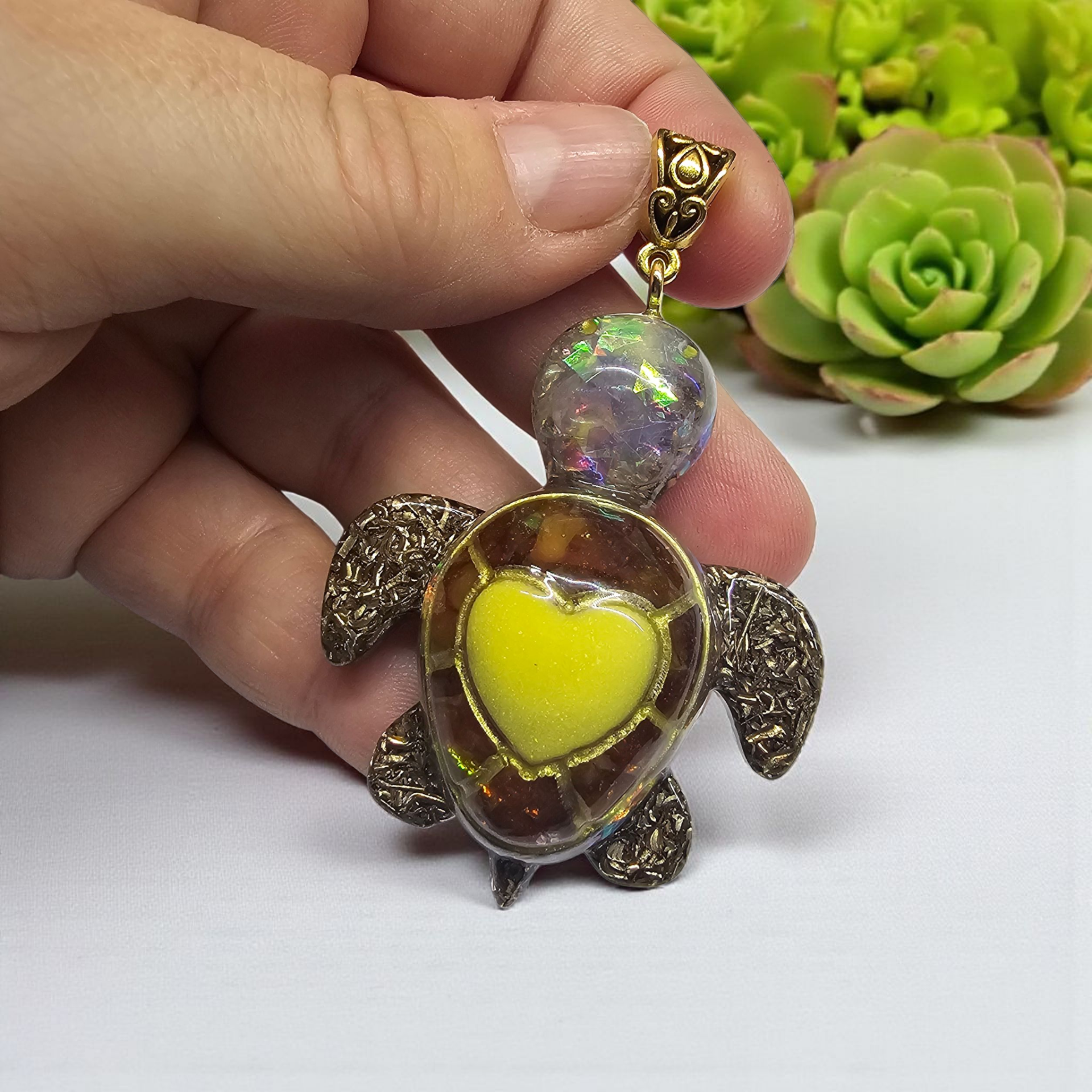 Orgonitový přívěsek želva - Křišťál, Jantar (14)