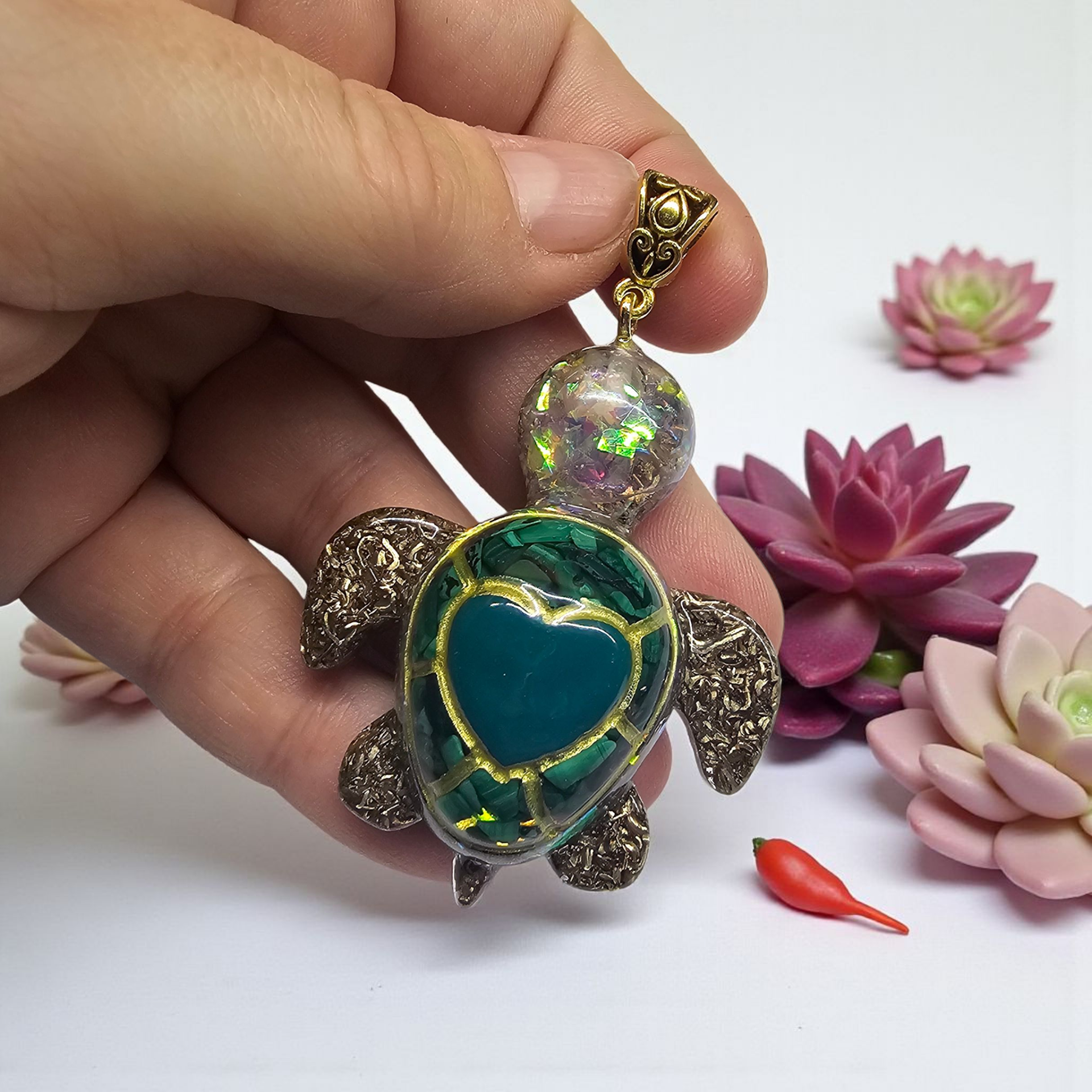 Orgonitový přívěsek želva - Křišťál, Malachit (13)