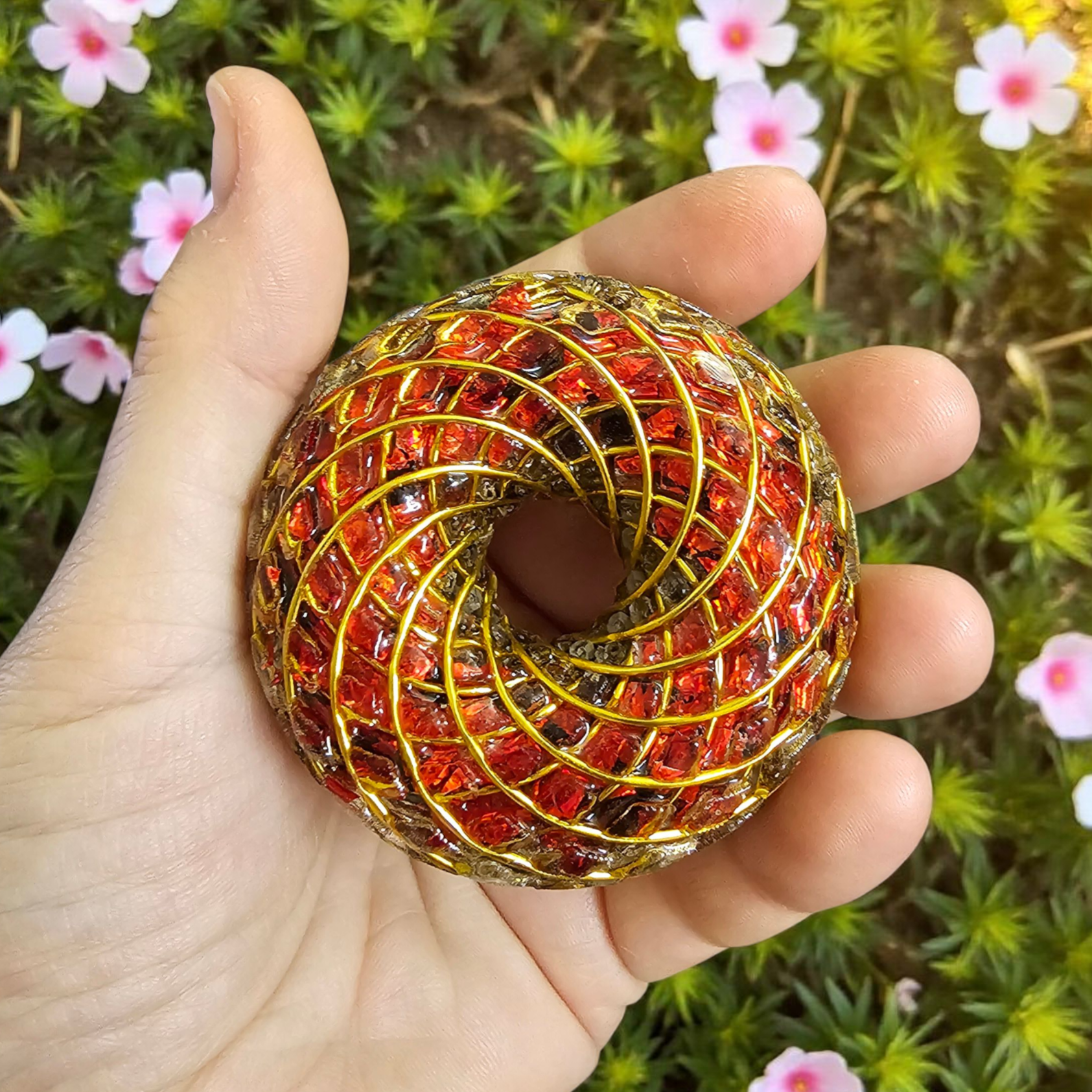 Orgonitový Torus 6 cm - Křišťál, Granát (23)