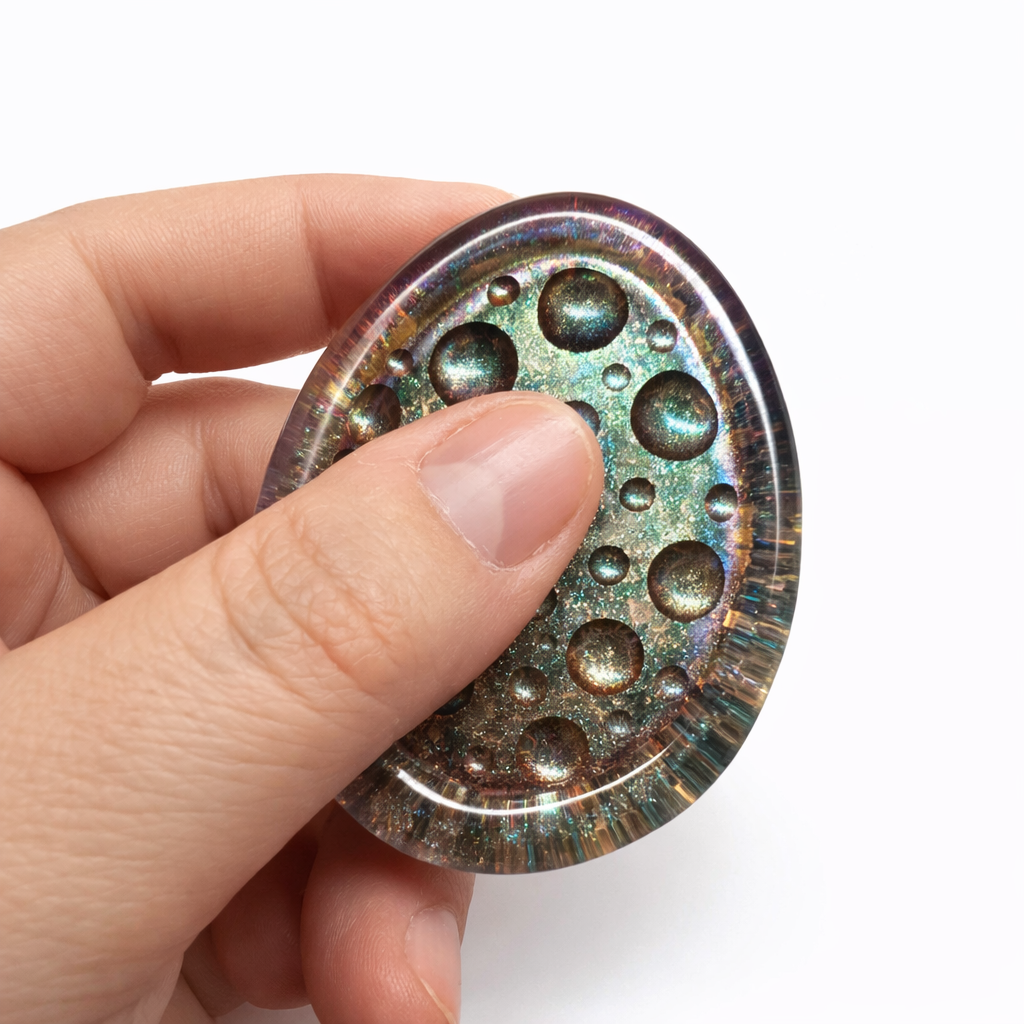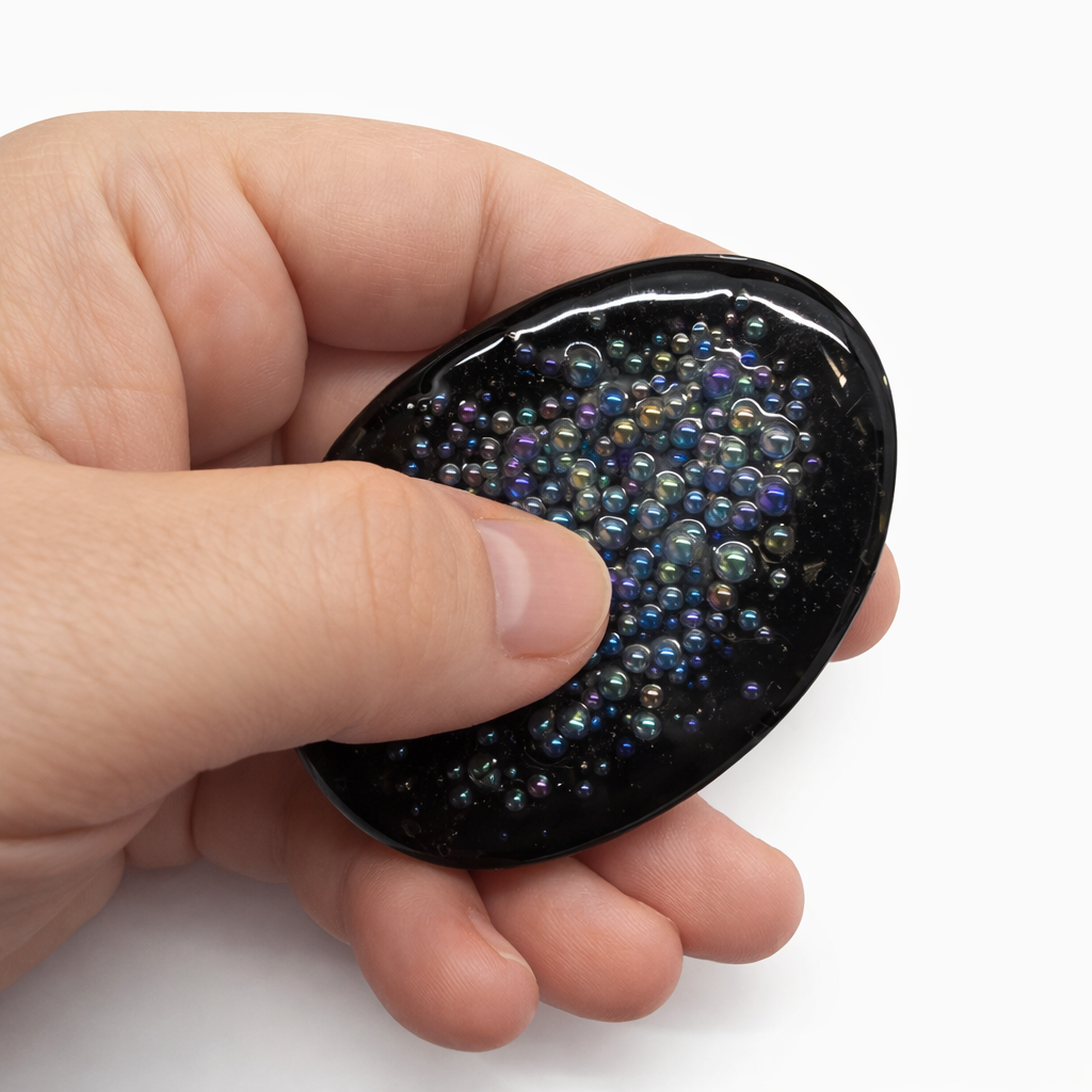 Tento jedinečný Worry stone spojuje dvě síly v jednom – uklidňující dotek a energii orgonitu.