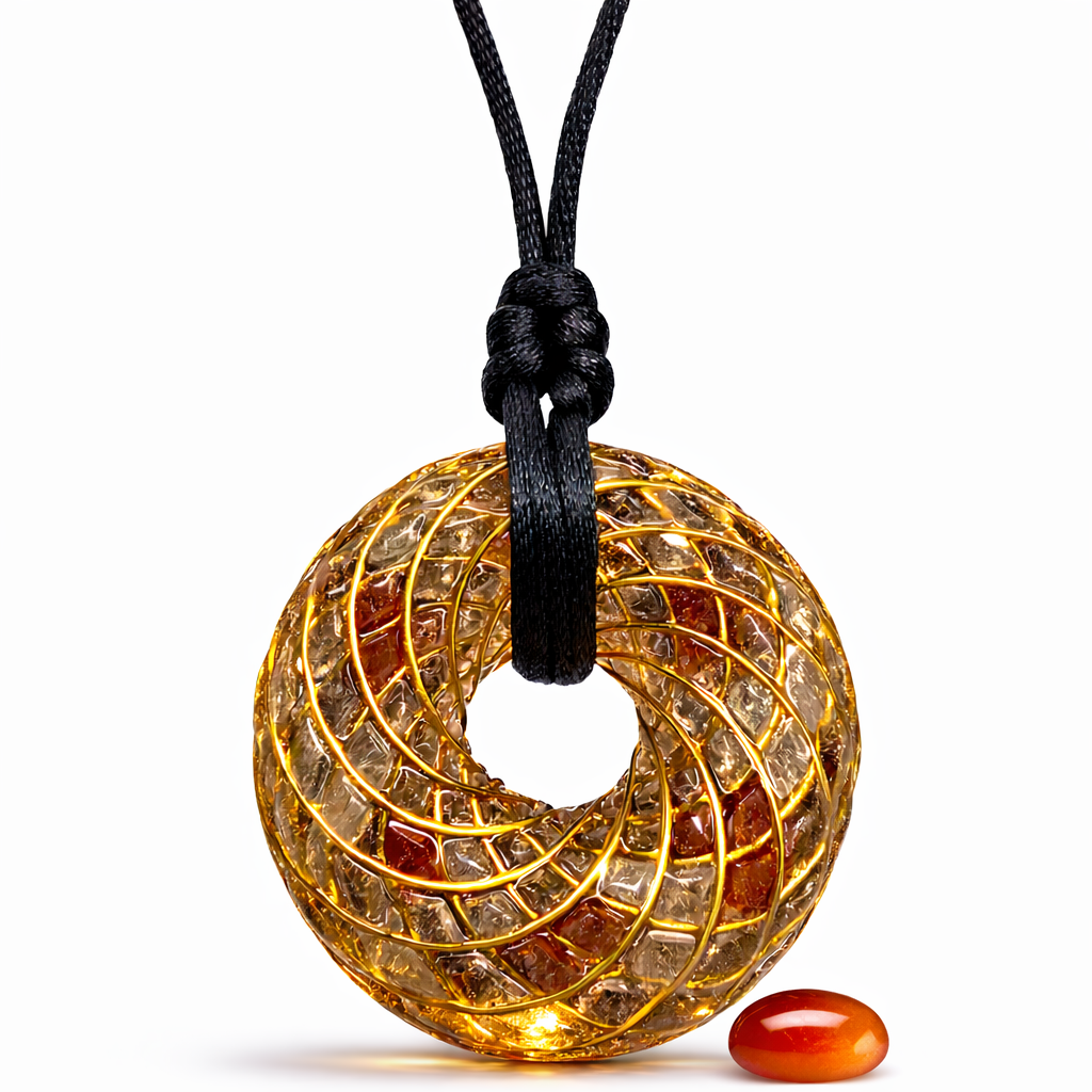 Přívěsek orgonitový Torus - Křišťál, Karneol 3,5 cm (52)