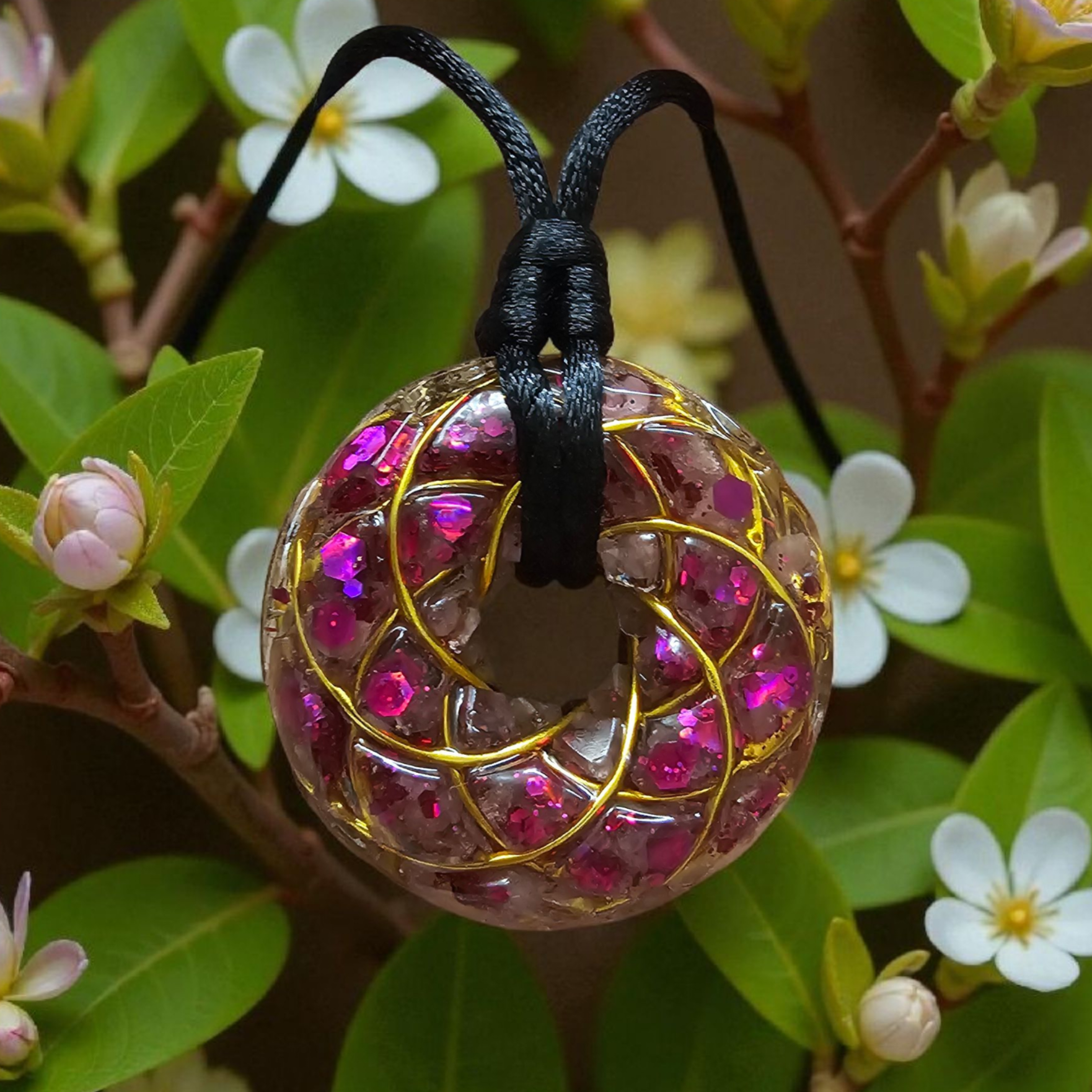 Přívěsek orgonitový Torus - Křišťál, Rubelit 3,5 cm (32)