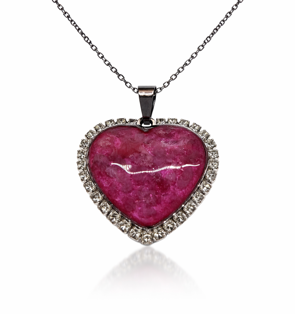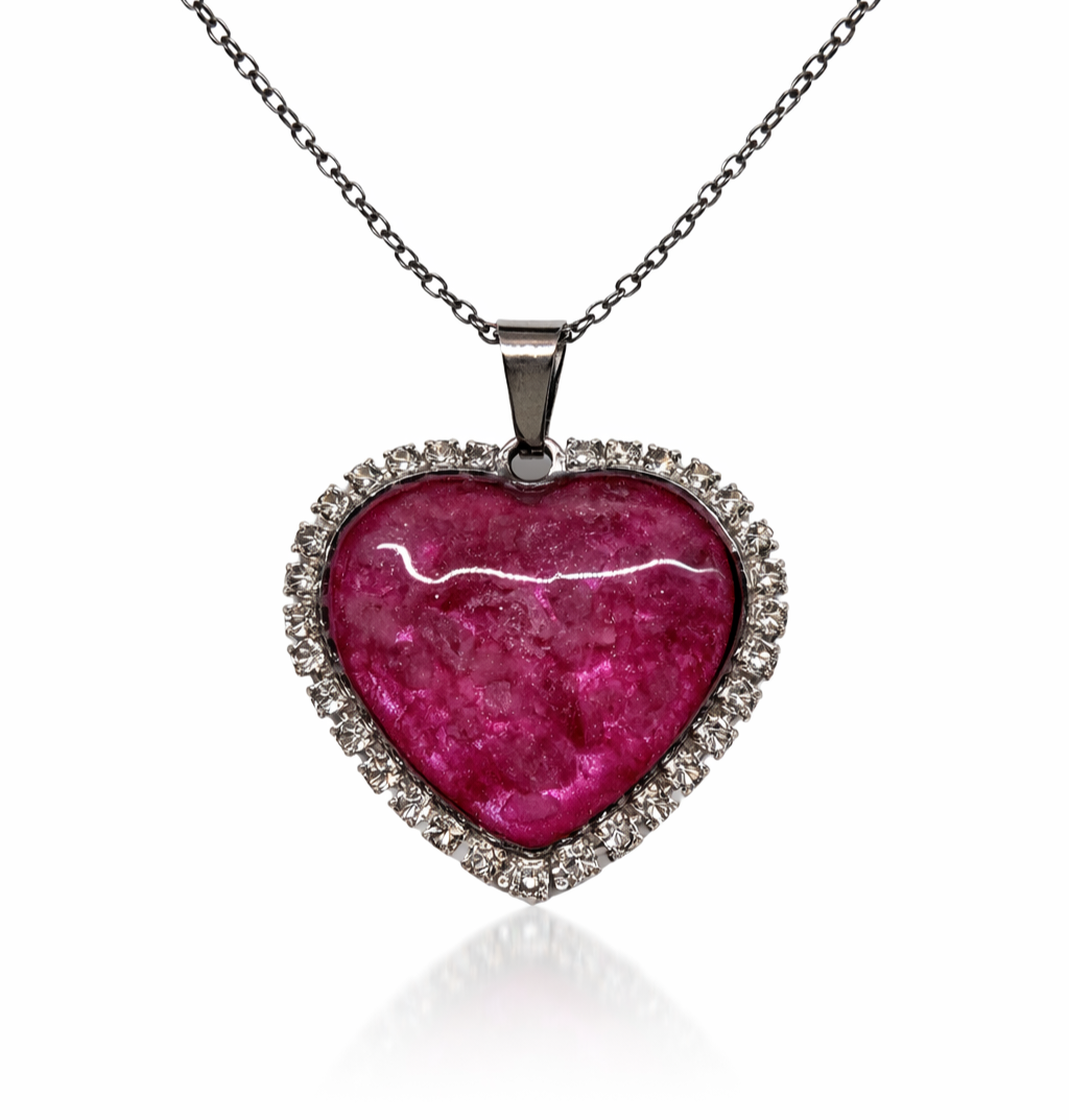 Výrazný a zároveň jemně romantický šperk ve tvaru srdce, ve kterém je zasazen Rubelit zalitý v pryskyřici. Každý kus je originál – kresba kamene i jeho struktura vytváří neopakovatelný vzhled, díky kterému je každý šperk jedinečný.