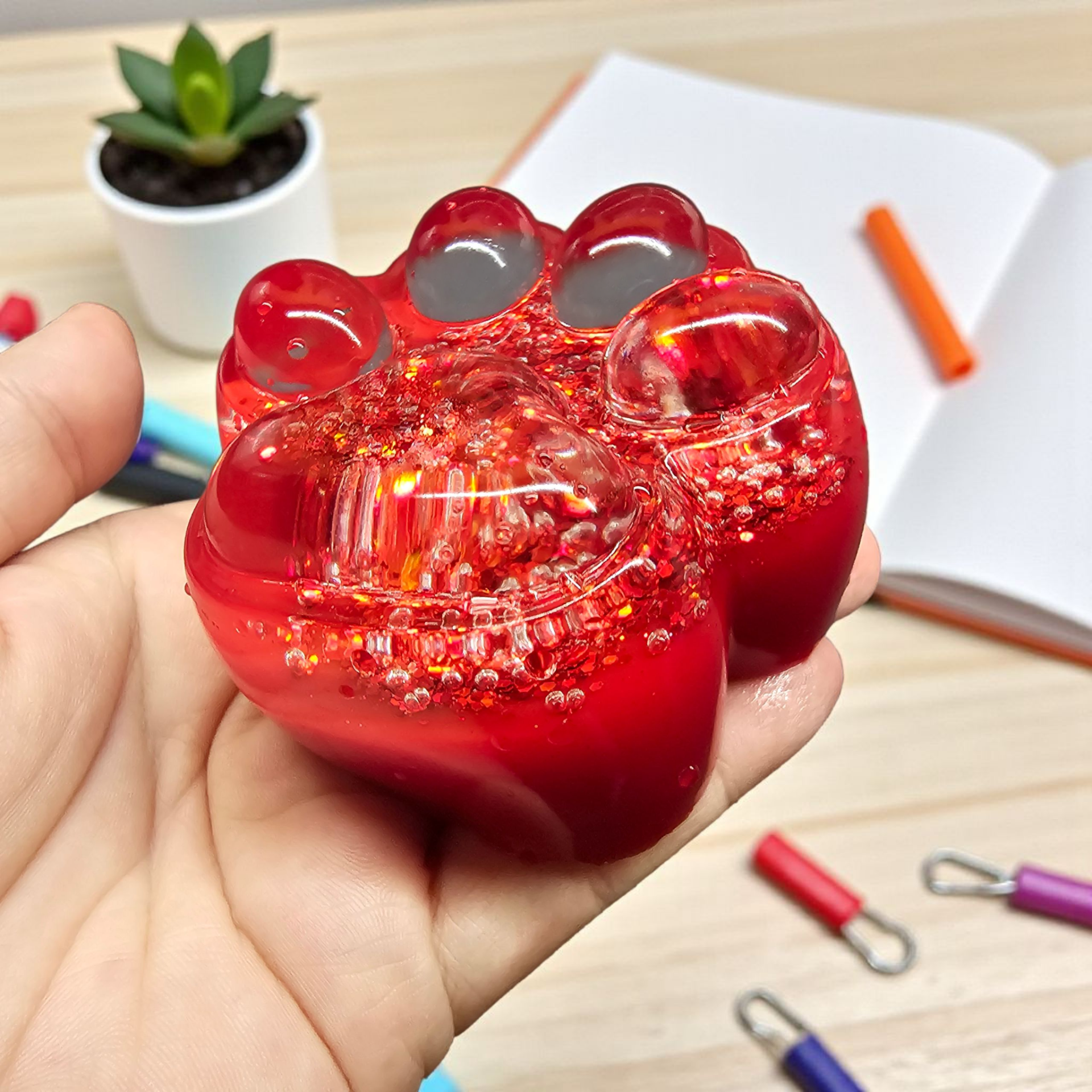 Opakované mačkání posiluje svaly dlaně, prstů a zápěstí. Skvělé pro ty, kteří mají sedavé zaměstnání, problémy s karpálními tunely nebo potřebují uvolnit napětí po dlouhém dni u počítače.